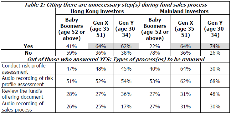 在回应调查的760名香港投资者中,56%认为基金购买过程中有不必要的步骤。